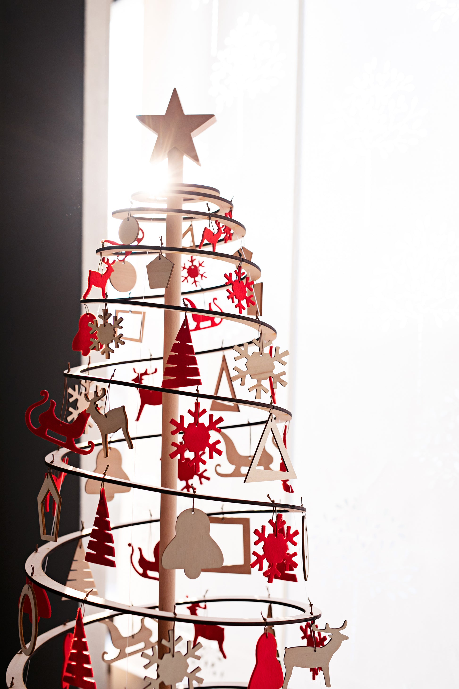 Edini komplet okraskov, ki jih potrebujete. Mešanica filca in lesenih okraskov je primerna za vse velikosti jelk Spira. Naravni materiali dinamičnih oblik bodo v vaš dom vnesli toplino in veselje, rdeča barva pa bo poskrbela za živahno praznično razpoloženje.