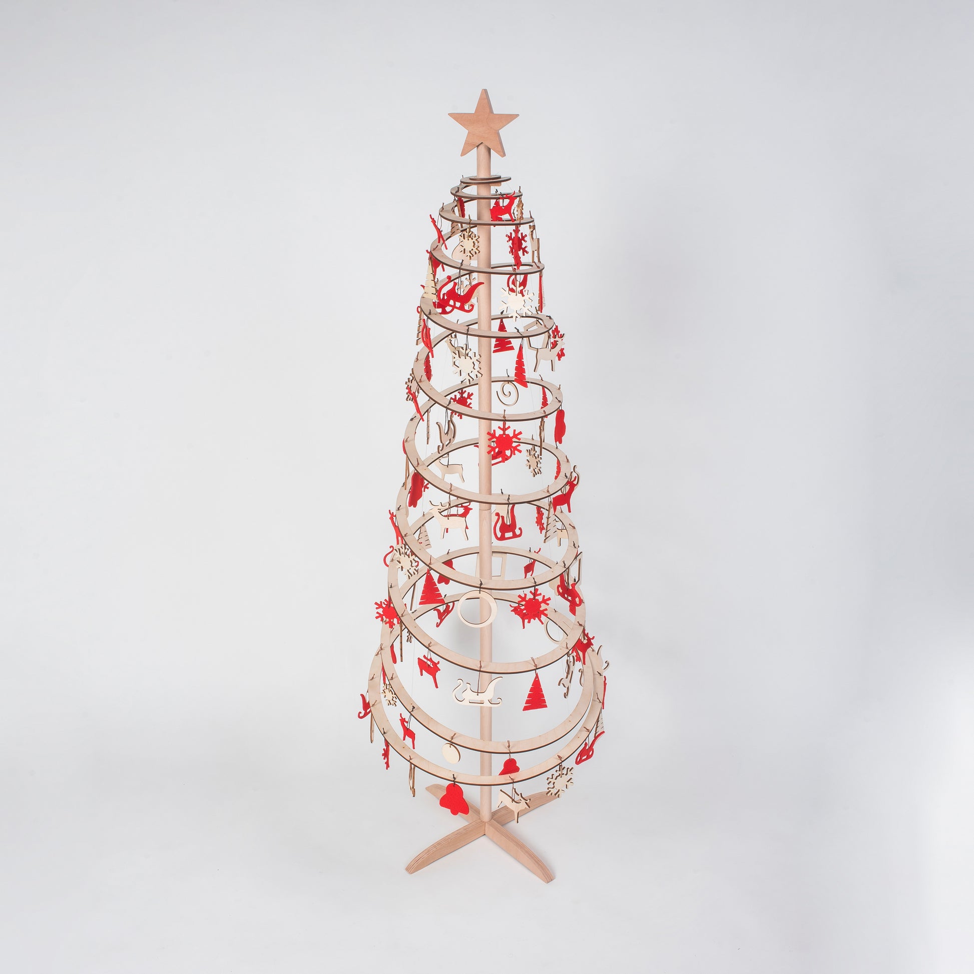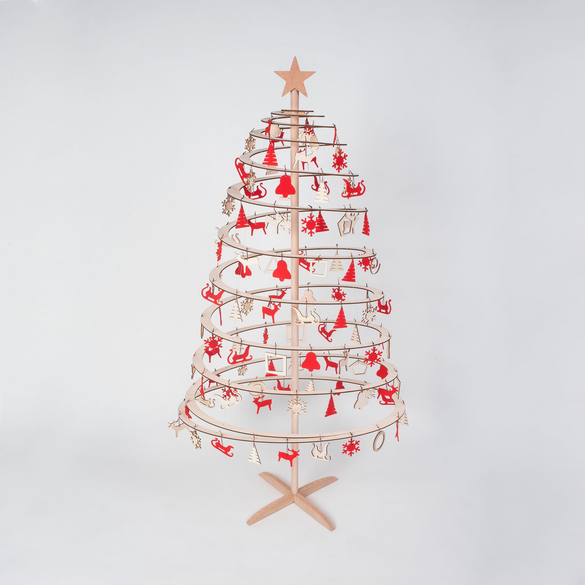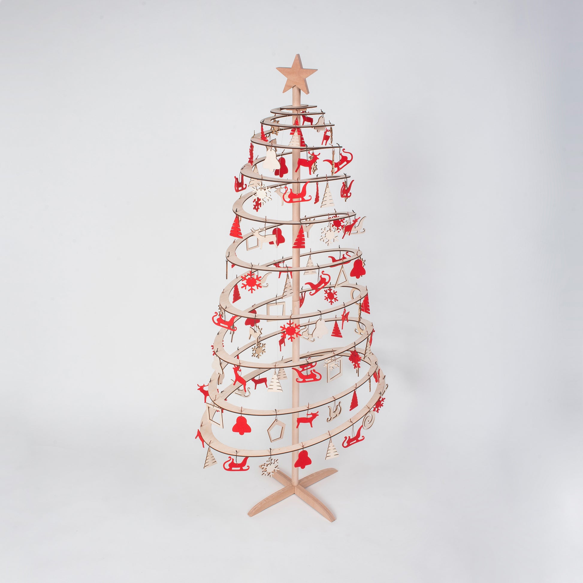 Edini komplet okraskov, ki jih potrebujete. Mešanica filca in lesenih okraskov se prilega velikemu ovalnemu božičnemu drevescu Spira.